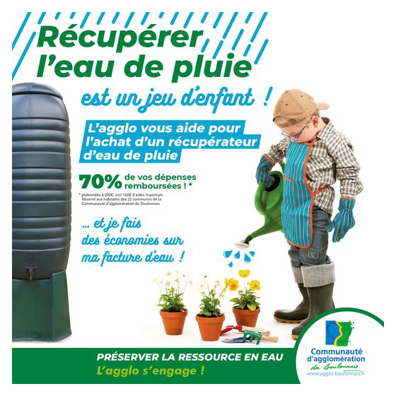 Aide à l'achat d'un récupérateur d'eau de pluie (réservé aux habitants des 22 communes de la CAB).